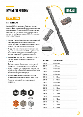 Профи. SDS-PLUS хвостовик. По бетону, камню, кирпичу. Для перфоратора. Для профессионального использования. Износостойкий. Цельна крестообразная вставка с добавлением 8% кобальта для повышенной производительности. Двойная спираль для быстрого отвода материала и охлаждения корпуса бура. Материал: легированная инструментальная сталь, твердосплавная вставка из карбида вольфрама ВК8С. Упаковка: пластиковый подвес.